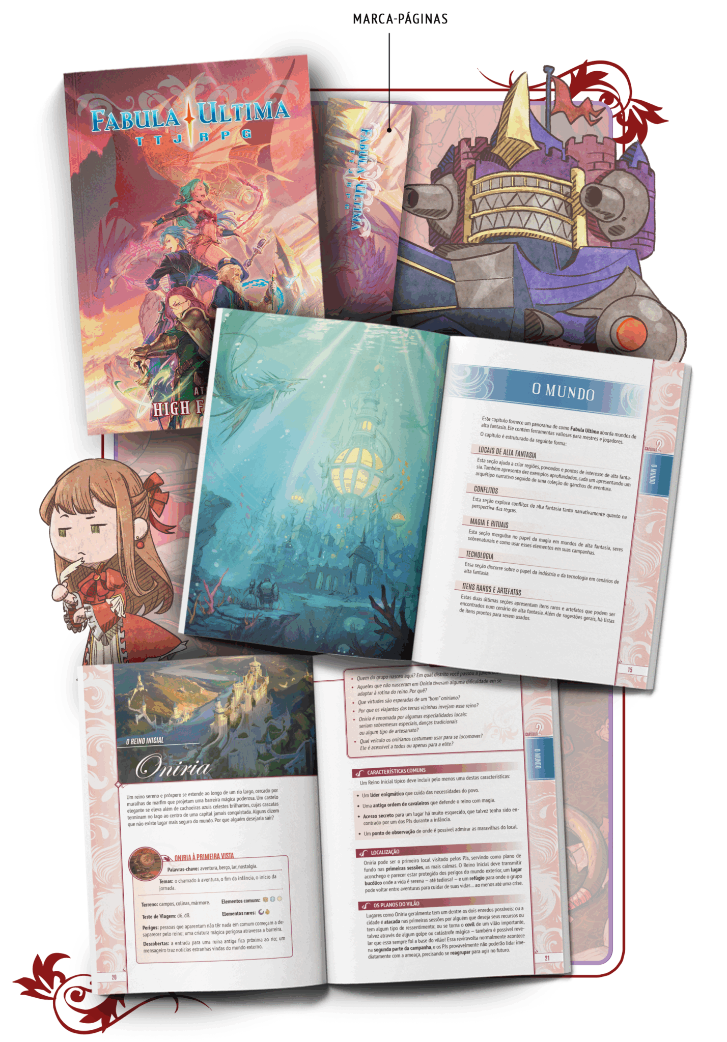 O ATLAS: HIGH FANTASY de Fabula Ultima guiará você e seus amigos por um mundo repleto de mistérios ancestrais, paisagens espetaculares e criaturas poderosas. Como os heróis das lendas e dos mitos, seus personagens terão origens humildes, então seguirão em direção aos seus destinos gloriosos, enfim tornando-se capazes de desafiar os deuses, como em um verdadeiro JRPG!