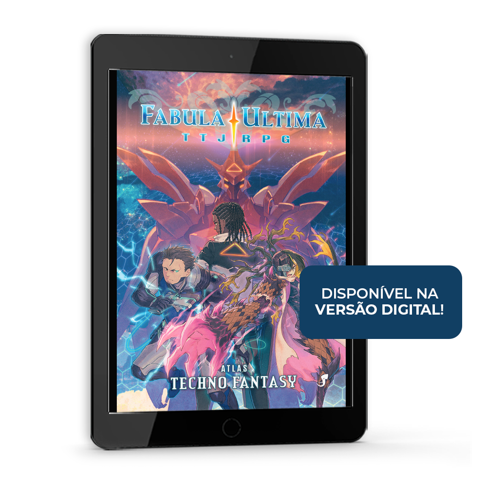 O ATLAS: TECHNO FANTASY de Fabula Ultima levará você e seus amigos a mundos distópicos de alta tecnologia, onde heróis proscritos lutam contra a desigualdade enquanto vilões cruéis cometem atrocidades para resguardar seus privilégios.