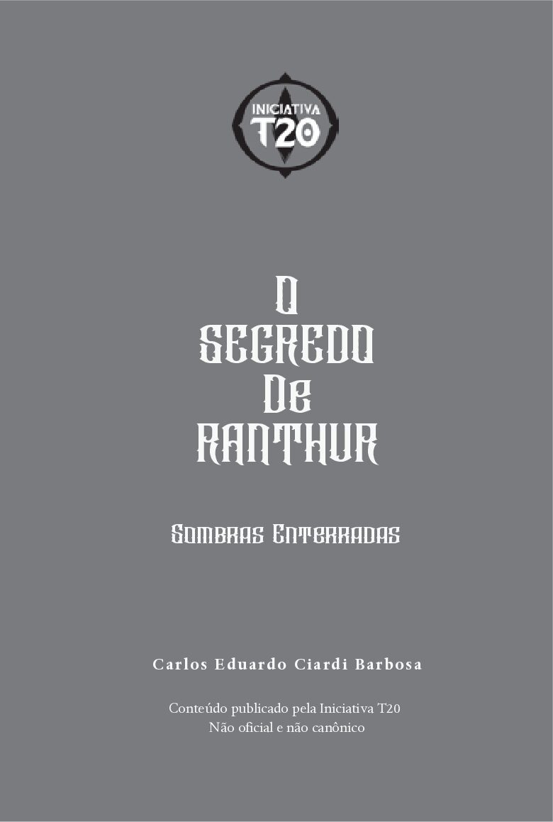 O livro representa a primeira parte do Arco I da campanha “Segredos de Ranrhur”, também disponibilizada na Iniciativa T20.